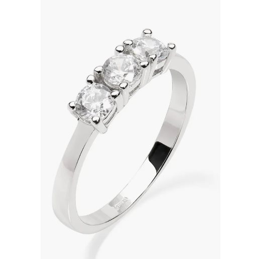 Anello Trilogy con Zirconi 4 mm Anello trilogy in argento 925 rodiato con zirconia cubica 4 mm.