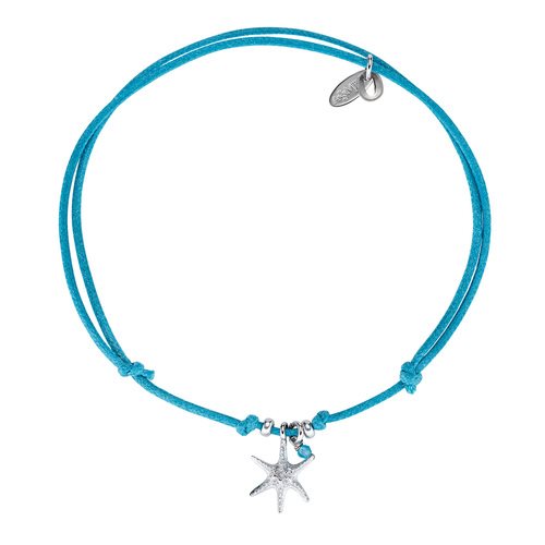 Bracciale in AG925 cordino cerato azzurro e cristallo azzurro - Rodio