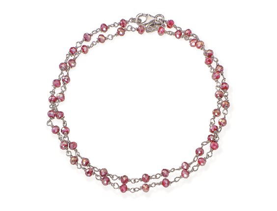 Bracciale in AG925 Cristalli cangianti amaranto (Lungh. 17+3 cm) Bracciale della collezione Amen Romance da donna. Colore: argento e rosso. Bracciale in argento 925‰ rodiato con doppia catena e cristalli amaranto. Grani Ø 3 mm. Lunghezza regolabile: 17 cm + 3 cm, con chiusura a moschettone. Made in Italy.