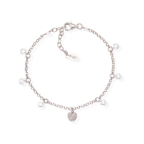 Bracciale Cuore Zirconate e Pepite Bianche - Bracciale in AG925 e zirconi bianchi Rodio - Lungh. 16+3cm - charm Ø 5mm