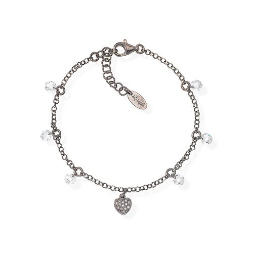 Bracciale Cuore Zirconate e Pepite Bianche - Bracciale in AG925 e zirconi bianchi Rutenio - Lungh. 16+3cm - charm Ø 5mm