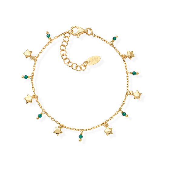bracciale amen stelle e cristalli verdi in argento 925 placcato oro giallo