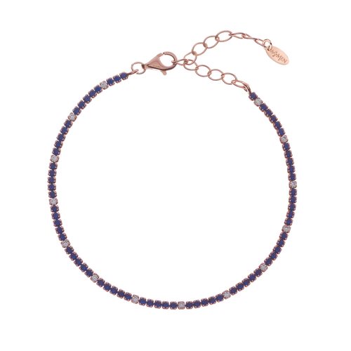 Bracciale in AG925 con zirconi blu e bianchi - Rosè - (Lungh. 17 + 3,5 cm; Ø 1 mm)