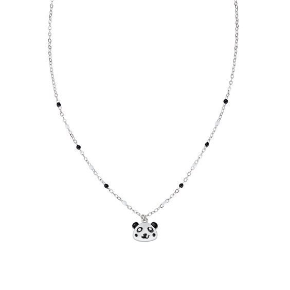 Collana Junior con Panda in Argento e Smalto Collana in argento 925 rodiato con pendente e smalto bianco e nero. Lunghezza regolabile da 35 a 39 cm, chiusura a moschettone.