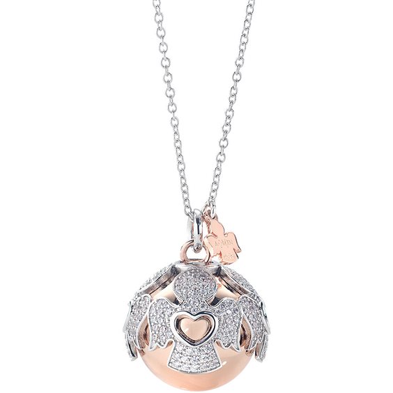 Collana da donna di Amen della collezione Chiama Angeli. Gioiello in argento 925 con placcatura in rodio/rosè e zirconi bianchi. La lunghezza è: 90 + 5 cm. La referenza è: CCABRBZ.