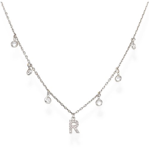 Collana Da Donna Della Collezione Letterami. Gioiello Realizzato In Argento 925 Rodiato Con Zirconi Bianchi. Lunghezza: 37+5Cm E Altezza Charm: 6Mm