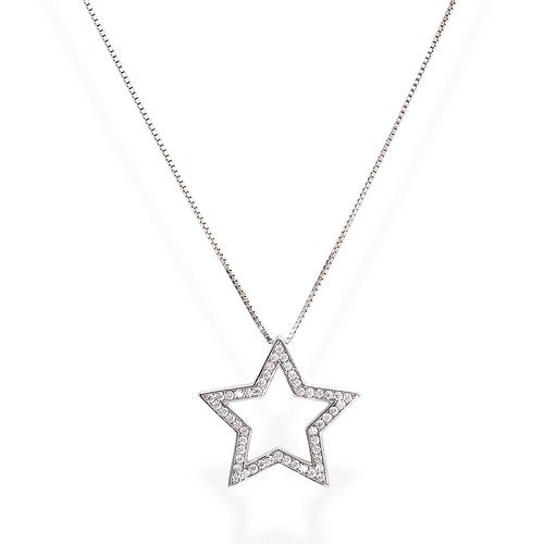 Collana Stella Grande Zirconi - Collana in AG925 e zirconi bianchi Rodio - Lungh. 42cm - charm Ø 2cm
