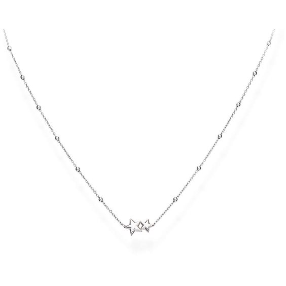 Collana in Argento rodiato 925/°°° a palline con 3 stelle; lunghezza personalizzabile da 36 a 41 cm
