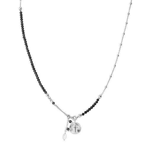Collana in Argento 925 cristalli neri e perla di fiume - Rodio - Lunghezza 40+4cm.