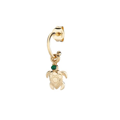 Monorecchino Argento 925 e cristallo verde - Dorato - Ø 1 cm - corredato da shopper, scatola e garanzia