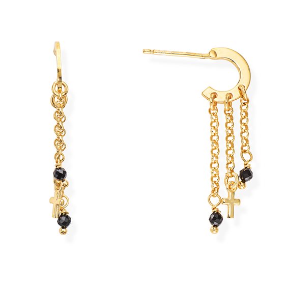 orecchini in argento 925 e cristalli neri - dorato - lunghezza 2,5cm - corredato da shopper, scatola e garanzia