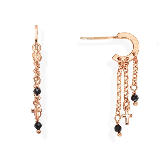 Orecchini in Argento Rose' 925 e cristalli neri. Lunghezza 2,5cm.