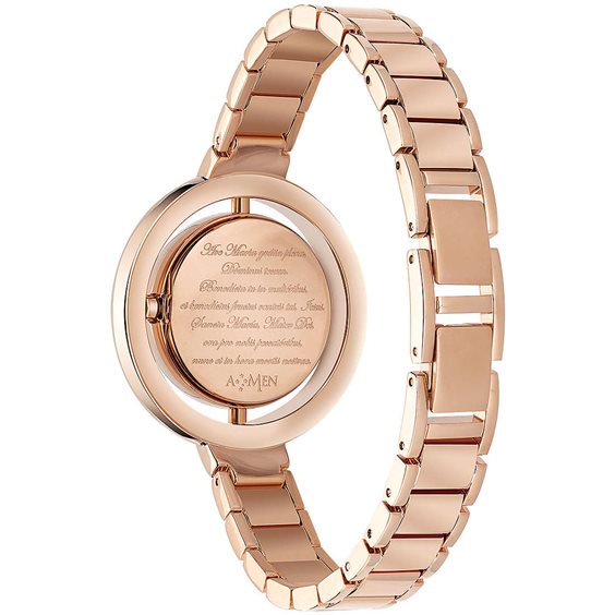 Orologio Solo Tempo Da Donna Della Collezione Devotion Di Amen. Diametro Di 37Mm. Il Movimento È Al Quarzo. Il Fondello È Di Colore Rosè. Il Vetro È Minerale. Il Bracciale È In Acciaio Di Colore Rosè Con Fibbia A Gioiello E Chiusura Deployante. Il Quadrante È Analogico Di Colore Rosè. La Resistenza All'Acqua È Di 3 Atm