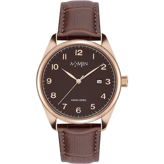 Orologio Solo Tempo Da Uomo Della Collezione Anno Zero Di Amen. Orologio Solo Tempo Con Cassa Realizzata In Acciaio 316L Con Finitura Rosè E Diametro Di 39Mm. Il Movimento È Al Quarzo. Il Fondello È A Pressione. Il Vetro È Minerale. Il Cinturino è In Pelle Di Colore Marrone Con Fibbia Ad Ansa Fissa. Il Quadrante È Analogico Di Colore Marrone. La Resistenza All'Acqua È Di 3 Atm.