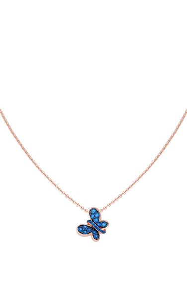 Collana in Argento 925 e zirconi blu - Rosè - Lunghezza 40+5cm - farfalla Ø 1cm