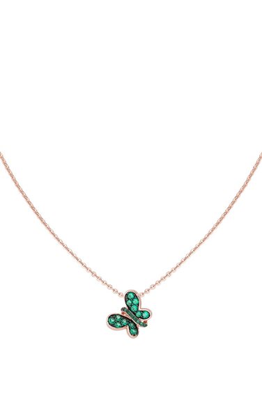 Collana in Argento 925 e zirconi verdi - Rosè - Lunghezza 40+5cm - farfalla Ø 1cm