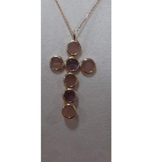 H4184620 collana in AG 925% placcato oro giallo 23 ct. con paste vitree in tonalità ametista. cm.42+ext