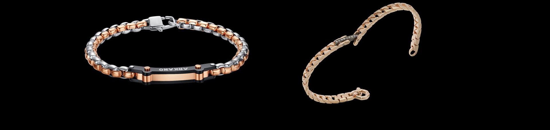 Verve e personalità caratterizzano i gioielli per uomo Arkano: l’eleganza raffinata si unisce alla ricerca estetica più innovativa, la tradizionale preziosità dell’oro e dei diamanti si rinnova attraverso l’accostamento a materiali alternativi, sia tecnologici che naturali Arkano si pone l’obiettivo di rimarcare le qualità delle proprie origini in chiave moderna, scegliendo l'utilizzo dell'acciaio 316L, impreziosito dai trattamenti di colore e dall'uso di pietre preziose.