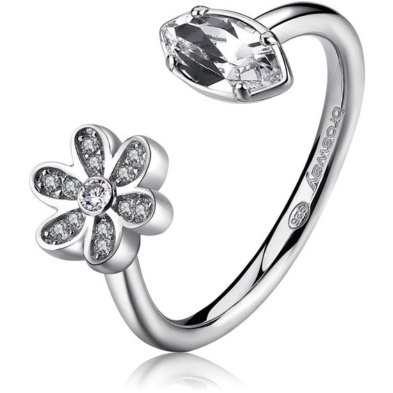 Anello Di Brosway Da Donna Della Collezione Affinity. Anello In Argento 925 Con Fiore, Pavè Di Zirconi Bianchi E Cristalli Swarovski Crystal. Anello Della Misura 14.