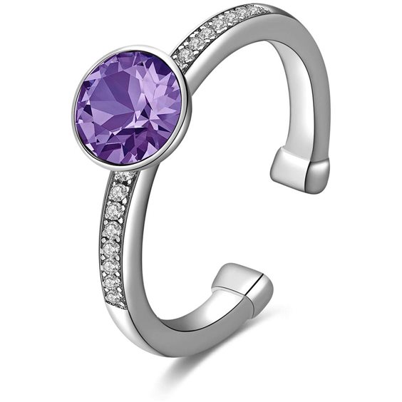 Anello Di Brosway Da Donna Della Collezione Tring. Anello In Argento 925 Con Pavè Di Zirconi Bianchi E Cristallo Swarovski Violet. Anello Della Misura 14.