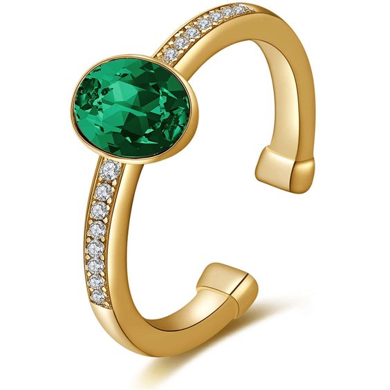 Anello Di Brosway Da Donna Della Collezione Tring. Anello In Argento 925 Galvanica Oro, Pavè Di Zirconi Bianchi E Cristallo Swarovski Emerald. Anello Della Misura 14