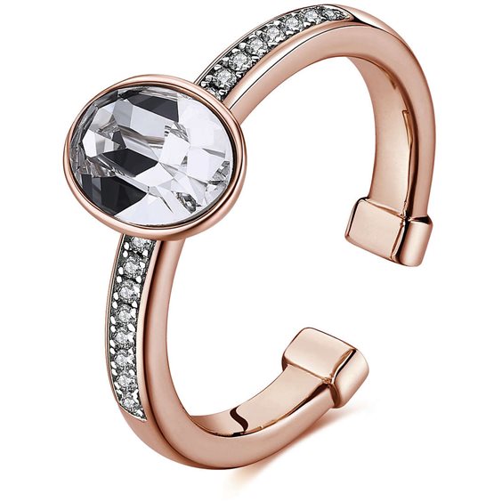 Anello Di Brosway Da Donna Della Collezione Tring. Anello In Argento 925 Galvanica Oro Rosa, Pavè Di Zirconi Bianchi E Cristallo Swarovski Crystal. Anello Della Misura 14.