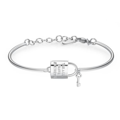 Bracciale in acciaio 316L con centrale a forma di lucchetto e chiave.