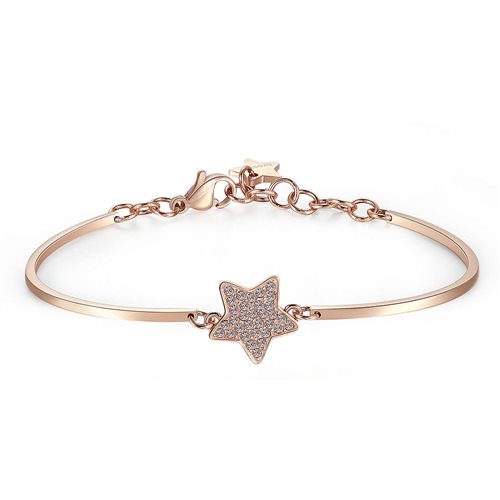 Bracciale Da Donna Di Brosway Della Collezione Chakra. Soggetto: Stellina Pavè (Protezione, Guida, Equilibrio. Gioiello In Acciaio 316L, Pvd Oro Rosa E Cristalli Swarovski® Vintage Rose. Misura: 70 Mm. Peso: 4,8 Gr.