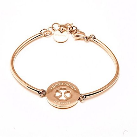 Bracciale Brosway da donna collezione Chakra. Realizzato in Acciaio 316L, Pvd oro rosa. Piastrina centrale con incisa un Quadrifoglio (che rappresenta ricchezza, fortuna e salute) e la scritta 'today is your lucky day'.