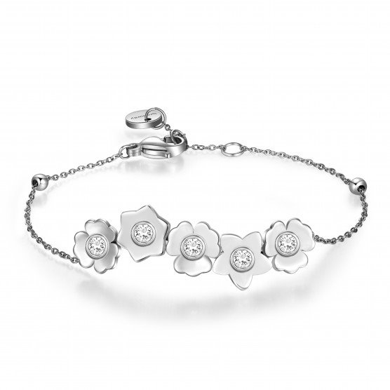 Bracciale in acciaio 316L con 5 fiori e cristalliSwarovski® bianchi.