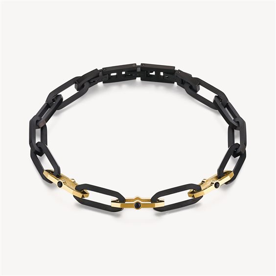 Bracciale accorciabile con maglie finali rimovibili. zirconi neri incastonati nelle maglie in pvd oro giallo