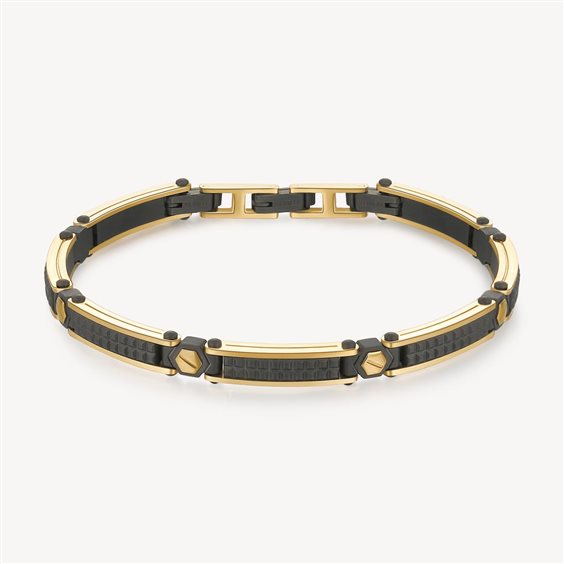 Bracciale semirigido in acciaio 316L con finitura pvd oro 14K lucido e finitura pvd colore rutenio satinato.