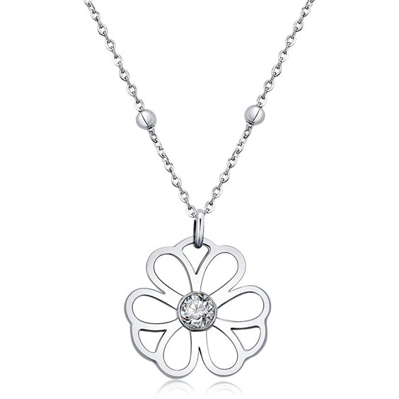 Collana Di Brosway Da Donna Della Collezione Ikebana. Collana In Acciaio Con Pendente A Forma Di Fiore Con Cristallo Swarovski Bianco.