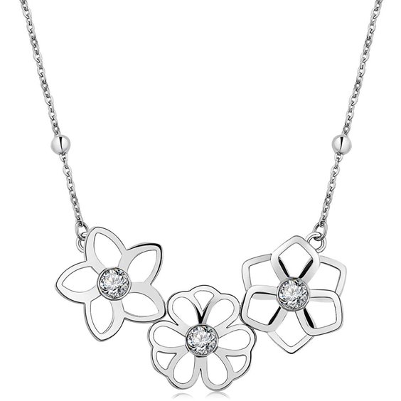 Collana Di Brosway Da Donna Della Collezione Ikebana. Collana In Acciaio Con Tre Fiori E Cristalli Swarovski Bianchi.
