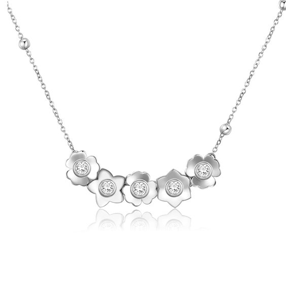 Collana in acciaio 316L con 5 fiori e cristalli Swarovski® bianchi