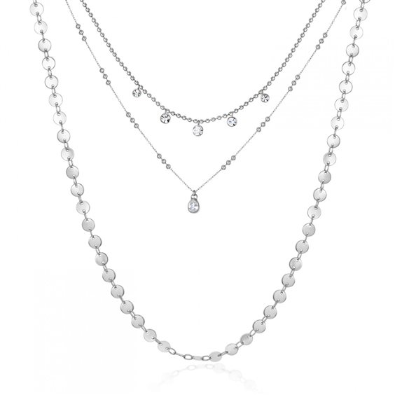 Collana lunga a tre fili in acciaio 316L e cristalli crystal