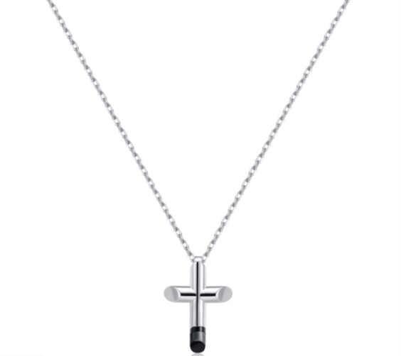 Collana con croce ,regolabile nella lunghezza grazie ad anellini finali. croce cm.2.5 con finale in pvd grigio brunito.