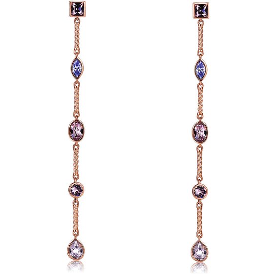 Orecchini Donna Brosway Affinity Collection. Orecchini lunghi in Pvd oro rosa, cristalli Swarovski rosa antico, lavenda della Provenza, luce di ametista e malva.