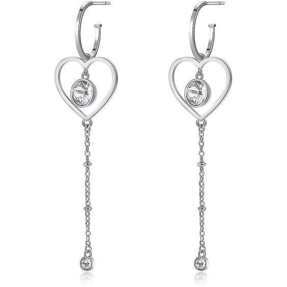 Orecchini a cerchio in acciaio 316L con pendente a forma di cuore e cristalli Swarovski©bianchi
