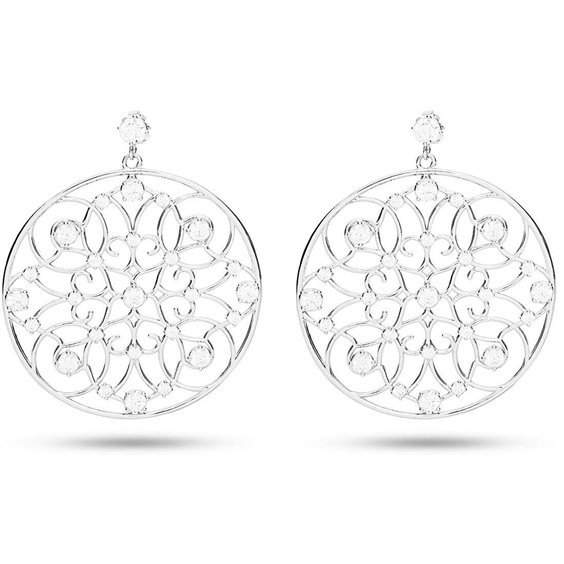 Orecchini Brosway collezione CORINTO codice BOI21. Orecchini grandi con pendente circolare in ottone rodiato e zirconi bianchi. Chiusura con farfallina a lobo. MISURA ORECCHINI: 60mm.