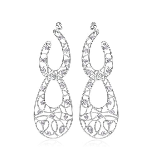 Orecchini pendenti lunghi in ottone rodiato e zirconi bianchi.