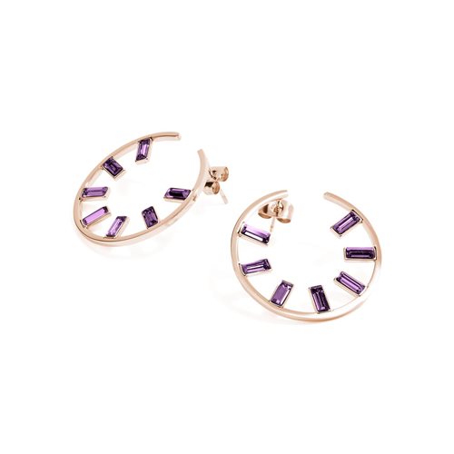 Orecchini a cerchio in acciaio 316L e pvd oro rosa con cristalli Swarovski©amethyst.