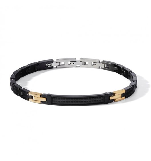 bracciale acciaio satinato,trattamento PVD nero satinato e rose lucido
