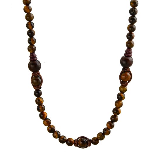 Collana Kenshò unisex realizzata con pietra Occhio di Tigre e cordoncino marrone. Taglia 40 cm – 50 cm.. Confezione completa di astuccio originale “Kenshò” e certificato di garanzia.