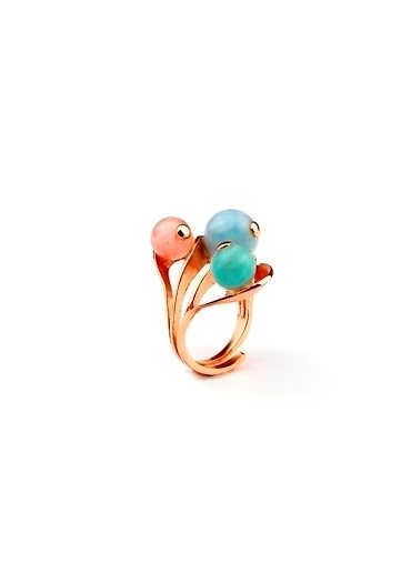 Anello regolabile in acquamarina milk multicolor, arg.925/00 placcato oro rosa
