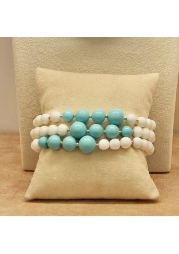Bracciale a tre fili agata bianca, pasta turchese 4 fiori