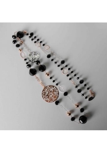 chanel in arg. 925/000 bicolore, rodiato e placcato oro rosè + e.c. agata nera sfaccettata. lunghezza 98 cm.