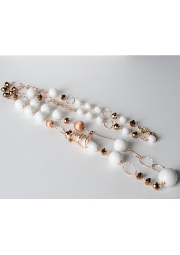 chanel in arg.925/000 placcato oro rosè trattato con e-coating agata bianca, quarzi idrotermali brown, spirale in filigrana, lunghezza 94 cm.