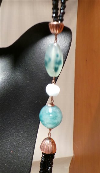 Collana in argento 925 ramata con agata nera, agata verde, acquamarina. Lunghezza cm. 100.