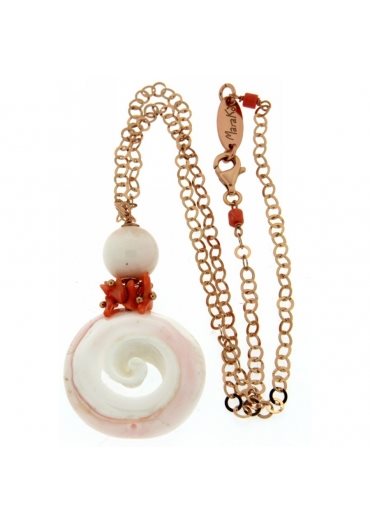 Ciondolo Conchiglia e Corallo rosa, argento 925/000 placcato oro rosa, trattato con e-coating lunghezza catena cm 45.